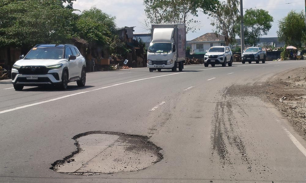 LOW-GRADE ASPHALT — Cracked asphalt along the Old Judge Jose De Venecia Sr. Road going to Calasiao poses risks to motorists and pedestrians, especially at night. Asphalt overlaying is done by the Department of Public Works and Highways over concrete roads. (Punchphoto by Butch Uka)