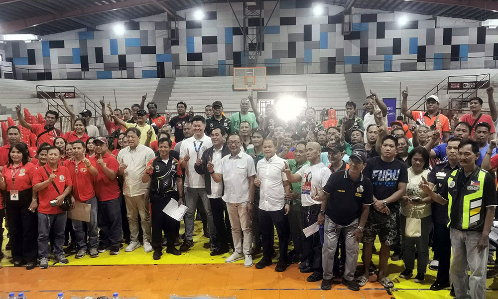 TRICYCLE RATES — Dagupan City councilors, Vice Mayor Bryan Kua, and other local government officials gather for a photo with representatives of tricycle drivers and operators associations, and members of the public after a hearing on the proposed tricycle fare matrix ordinance held October 23, 2025 at the Dagupan City Astrodome. (PUNCHphoto by Willie Lomibao)