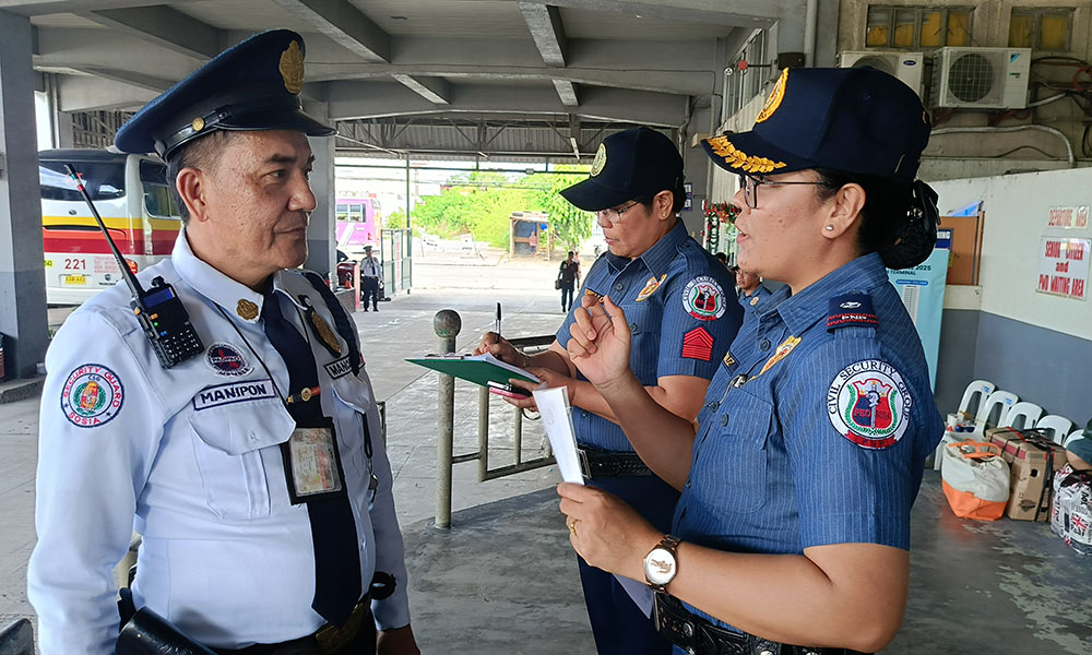 CCTVS AND SECURITY GUARDS OF BUS TERMINALS—Police personnel led by P/Major Maria Aurora Cruz, chief of the Administrative Section of the Regional Civil Security Unit, inspect the CCTVs installed in all bus terminals in Dagupan to ensure they are functioning for the safety and security of passengers. They also checked the security personnel in the terminals to ensure they were in proper uniform and equipped with complete working gear. (PUNCHphoto by Butch Uka)