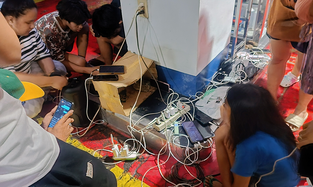 FREE PHONE CHARGING—To serve phone users as electricity was out for 14 hours following the onslaught of “Uwan”, the main Centrum gasoline station in Daguapan City, offers free cell phone charging last Monday (November 10). (PUNCHphoto by Butch Uka)