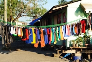 Look, our colorful clothes are waving and dancing on the clothesline!