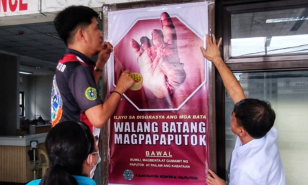 “OPLAN IWAS PAPUTOK”—Staff of Region 1 Medical Center in Dagupan City installs an “Oplan Iwas Paputok” poster at the entrance of the Emergency Room of the hospital to remind the public about the dangers of exploding firecrackers and pyrotechnics. R1MC will be placed on white alert from December 22, 2025 to January 3, 2026 in anticipation of many injuries due to firecracker explosions when Pangasinenses welcome the New Year. (PUNCHphoto  Ray Zambrano)